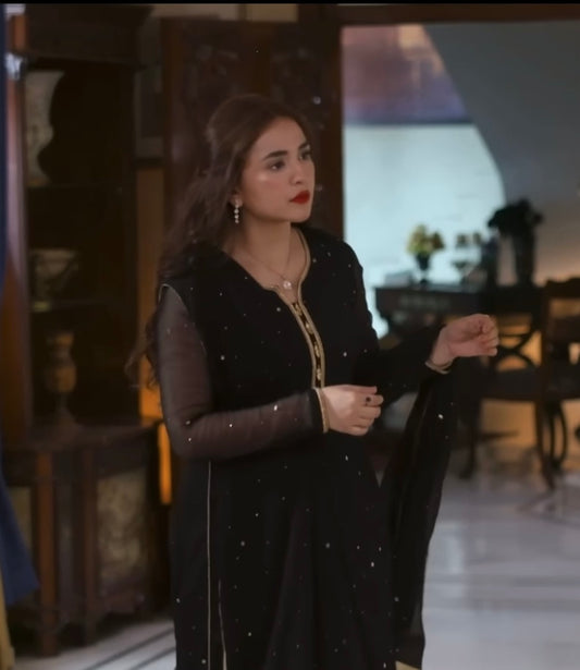 Color: BlackFabric: Pakistani ChiffonPishwas with kamdani work4 pcs stitched (inner included) Lining can be added...