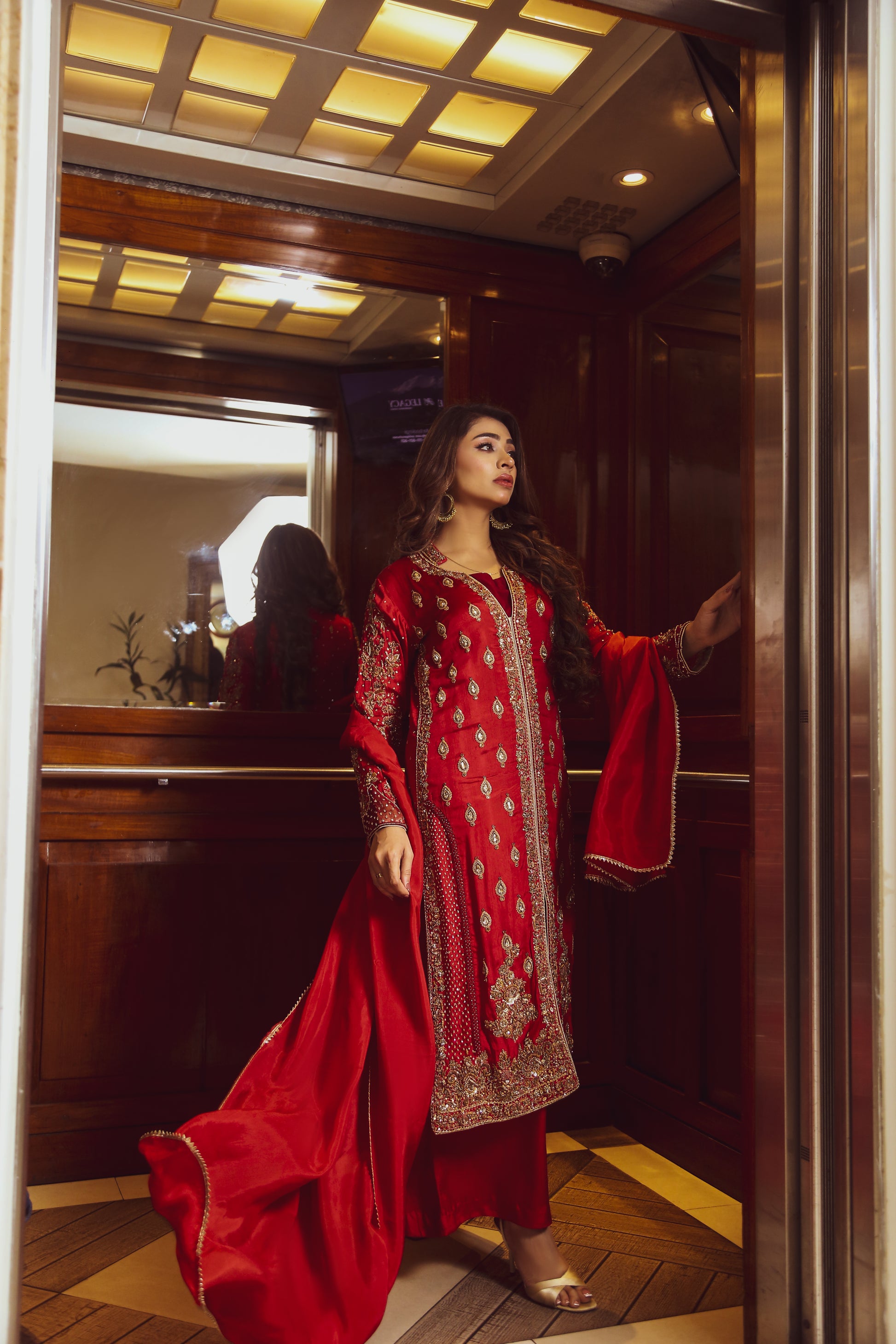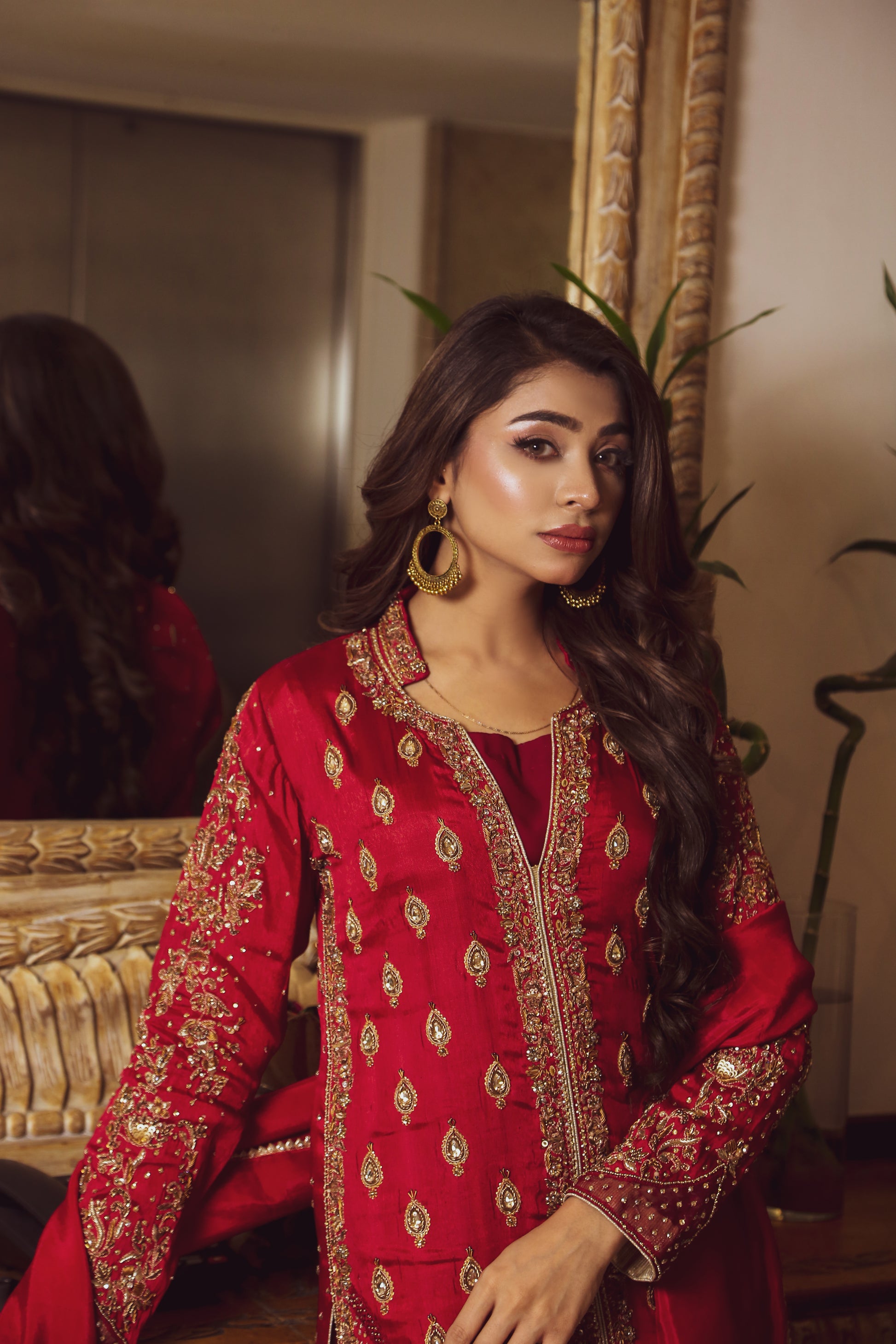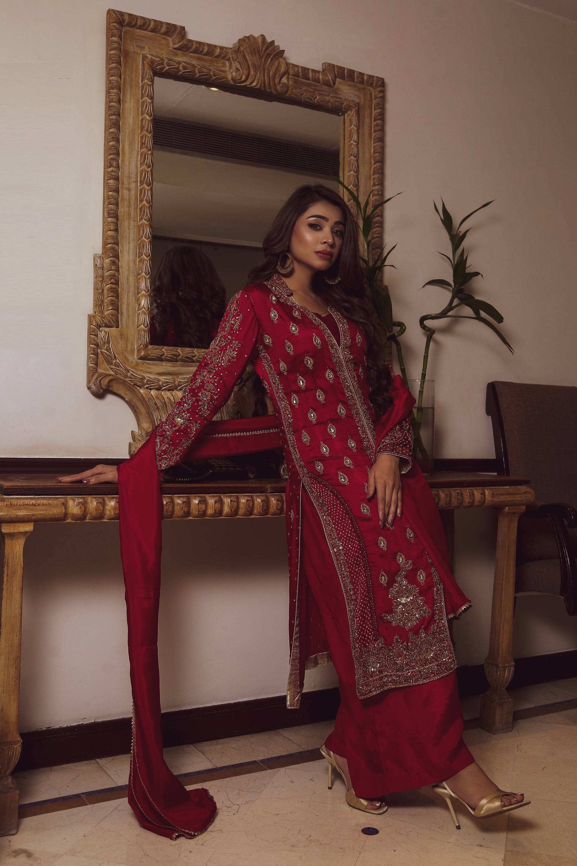 Cardinal is a refined expression of timeless elegance, crafted for those who appreciate understated luxury. Made in rich sheesha silk, this three-piece ensemble features meticulous handwork that adds depth and sophistication to the design. The outfit is paired with a graceful silk dupatta, completing a look that is both classic and contemporary. Perfect for intimate celebrations and formal gatherings, Cardinal embodies effortless grace with artisanal detail.