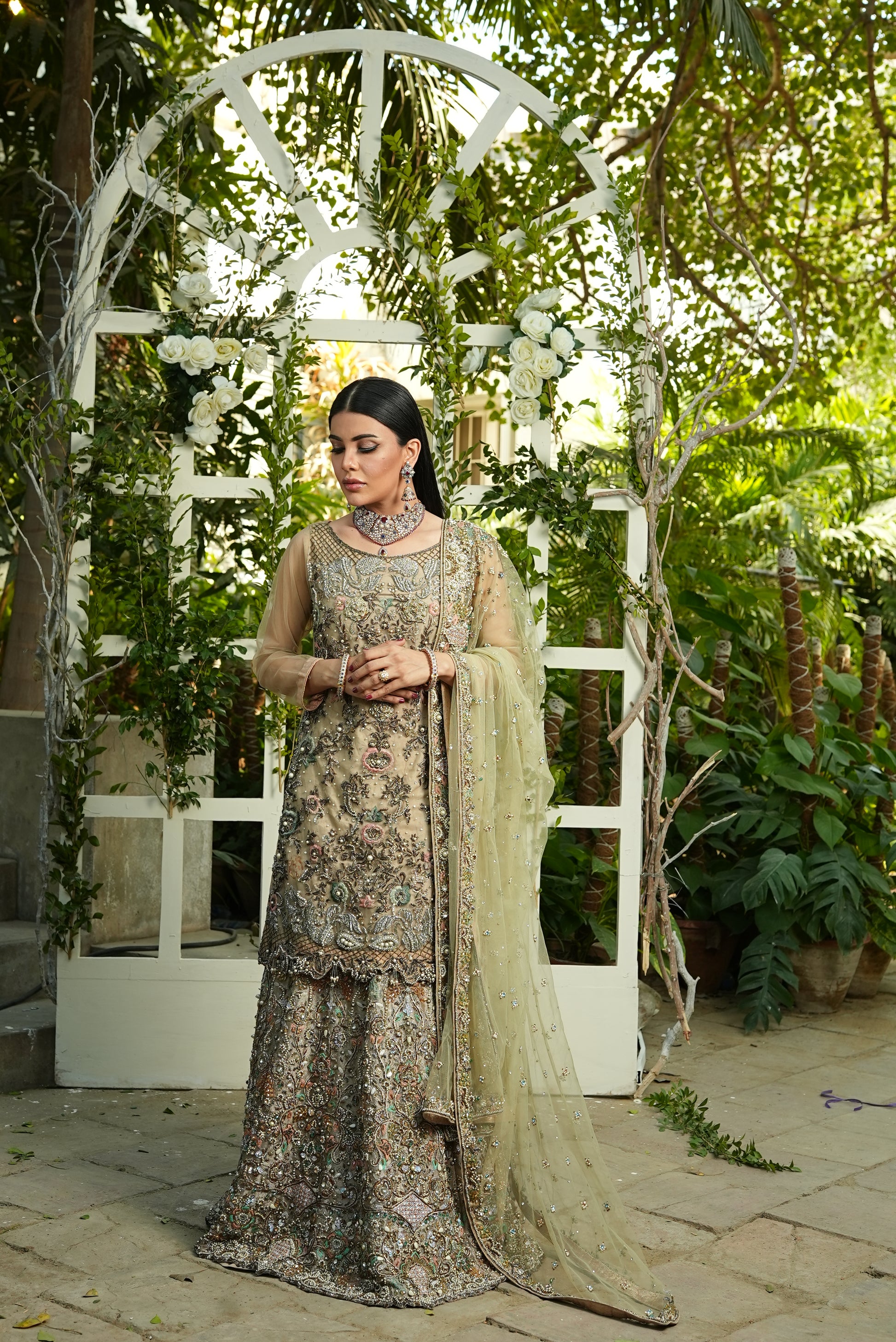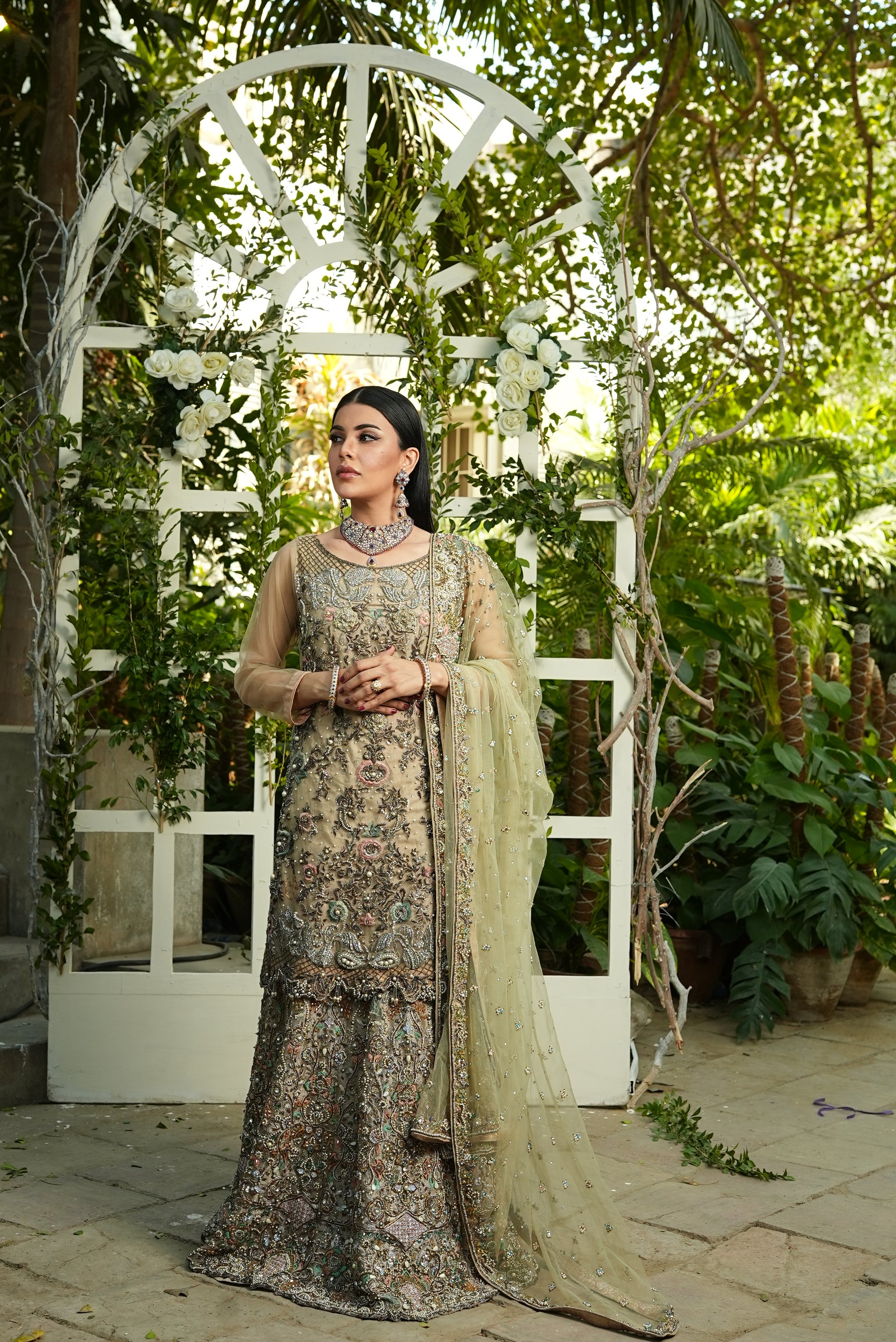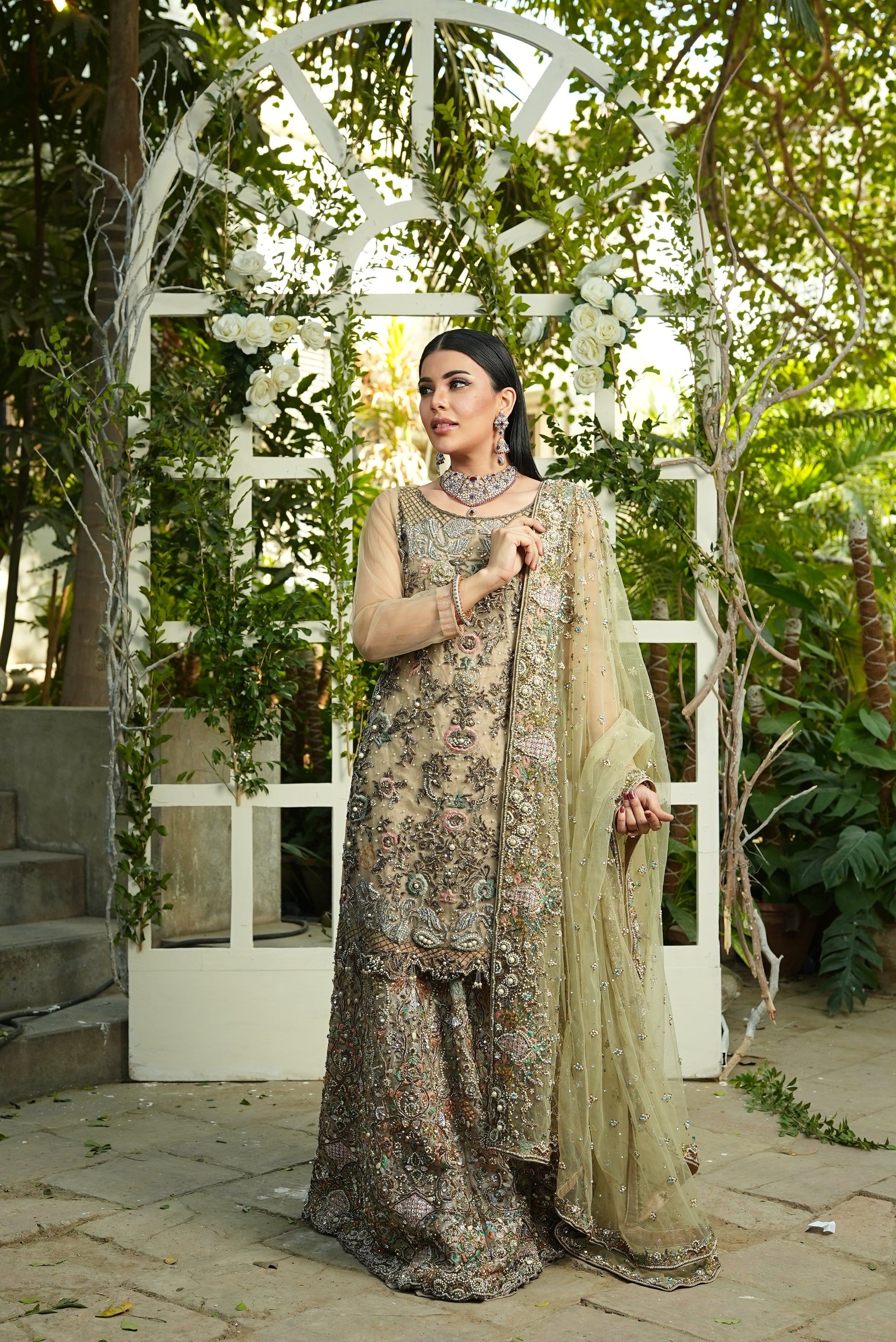 Experience ethereal grace with Miraal by Tasneem Sadaf, a bridal masterpiece that captures purity, sophistication, and timeless allure. Designed in shades of white and soft gray, this ensemble beautifully blends traditional artistry with a contemporary touch, making it an exquisite choice for the modern bride.